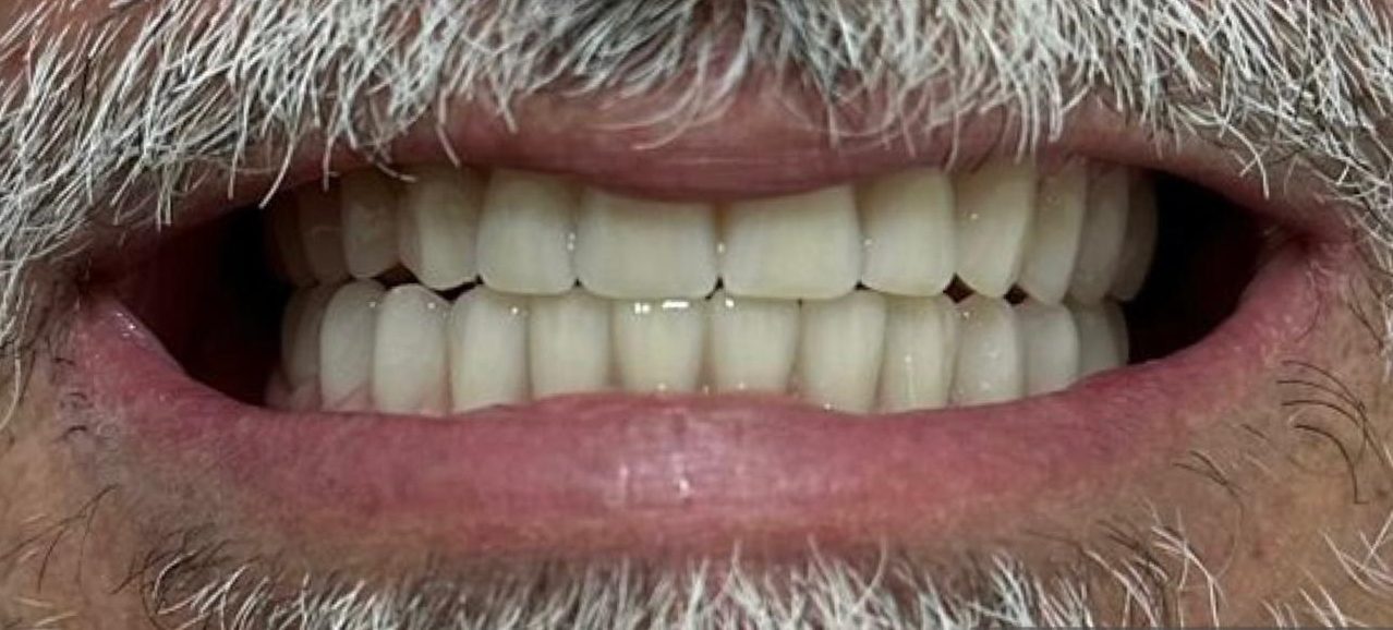 Reposição completa dos dentes – com próteses fixas sobre implantes, devolvendo função total.